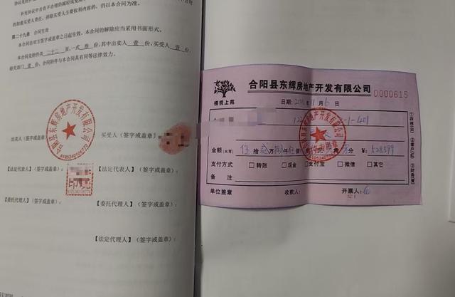 开发商出具了《商品房买卖合同》,开具了全款每套房子五十万元左右的收据,上面盖有合阳东辉房地产有限公司的章子。